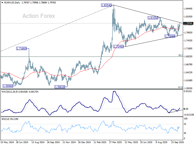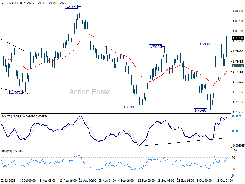 AUD/USD giảm mạnh sau dữ liệu việc làm yếu, làm dấy lên kỳ vọng RBA sẽ hạ lãi suất vào tháng 11, khi tỷ lệ thất nghiệp tăng lên 4.5% và tổng việc làm tăng thấp hơn dự báo. Beige Book của Fed cho thấy kinh tế Mỹ gần như đình trệ, áp lực lạm phát lan rộng, trong khi EUR/AUD tiếp tục xu hướng tăng sau khi phá kháng cự 1.7943.