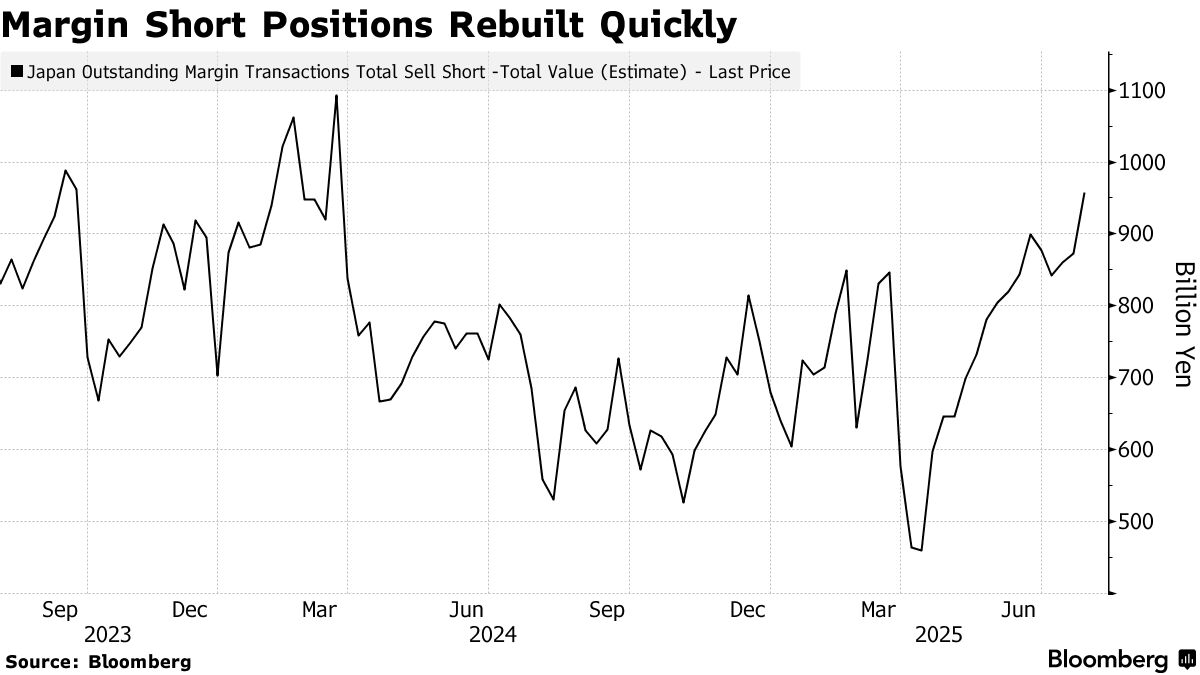 Chỉ số Topix đã đạt mức cao kỷ lục vào tuần trước sau khi Nhật Bản đạt được thỏa thuận thuế quan với Mỹ, ghi nhận mức tăng hàng tuần lớn nhất trong gần một năm. Tuy nhiên, những khoản lợi nhuận này đã khiến các nhà giao dịch lẻ định vị để chờ đợi một đợt thoái lui.