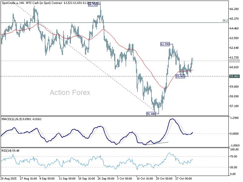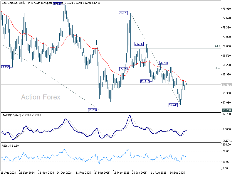 Giá có dư địa phục hồi mở rộng miễn là vùng hỗ trợ 59.96 được giữ vững. Việc phá vỡ mốc 62.99 sẽ hướng đến mục tiêu thoái lui Fibonacci 38.2% của nhịp giảm từ 78.87 xuống 56.44, tương ứng vùng 65.00.