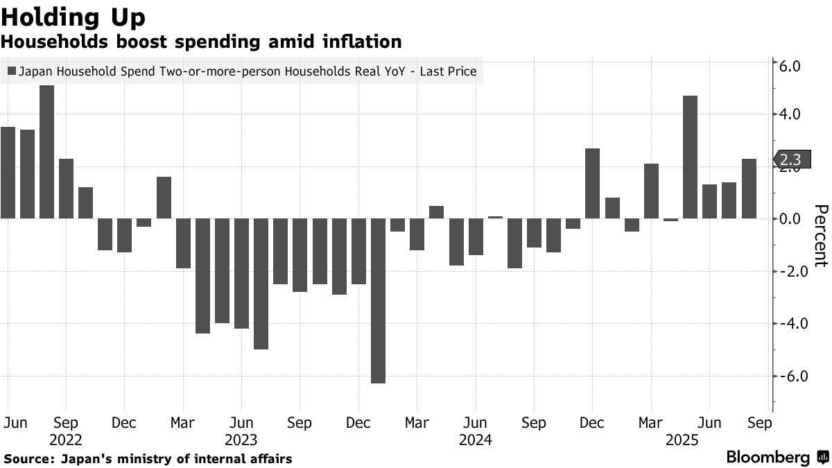 Tiêu dùng chiếm hơn một nửa sản lượng kinh tế của Nhật Bản và là chỉ số quan trọng để xem liệu nền kinh tế có đang trở nên bền vững với chi phí sinh hoạt tăng cao hay không. Nền kinh tế Nhật Bản đã tăng trưởng trong năm quý liên tiếp đến quý thứ hai của năm nay, ngay cả khi thuế quan cao hơn của Mỹ đè nặng lên xuất khẩu.