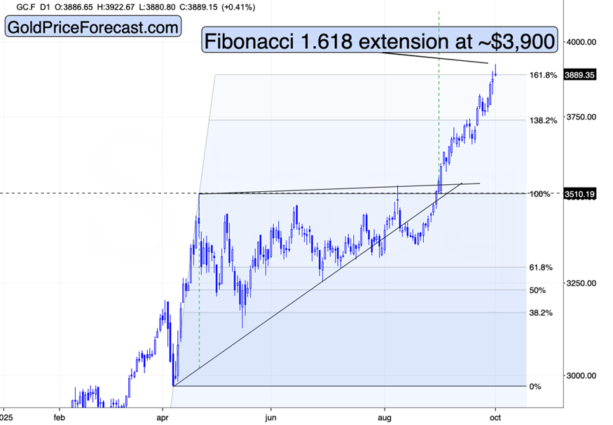 Vàng vừa chạm mức $3,899.15 rồi lập tức giảm, xóa sạch gần như toàn bộ mức tăng qua đêm. Điều này xảy ra ngay cả khi Chỉ số USD hầu như không biến động. Có thể nói vàng đang ở giai đoạn cuối của một nhịp tăng parabolic do đầu cơ thổi phồng, và giá đang “tự vận động”.