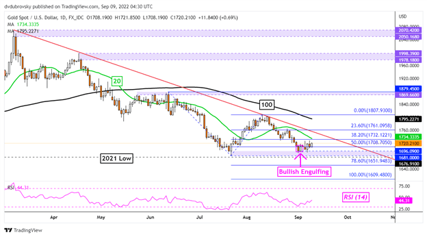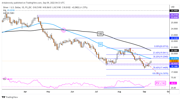 Vàng nỗ lực phục hồi sau đà giảm liên tục suốt tháng 8 trong khi bạc xác nhận một pha break qua đường xu hướng giảm ngắn hạn từ giữa tháng 8