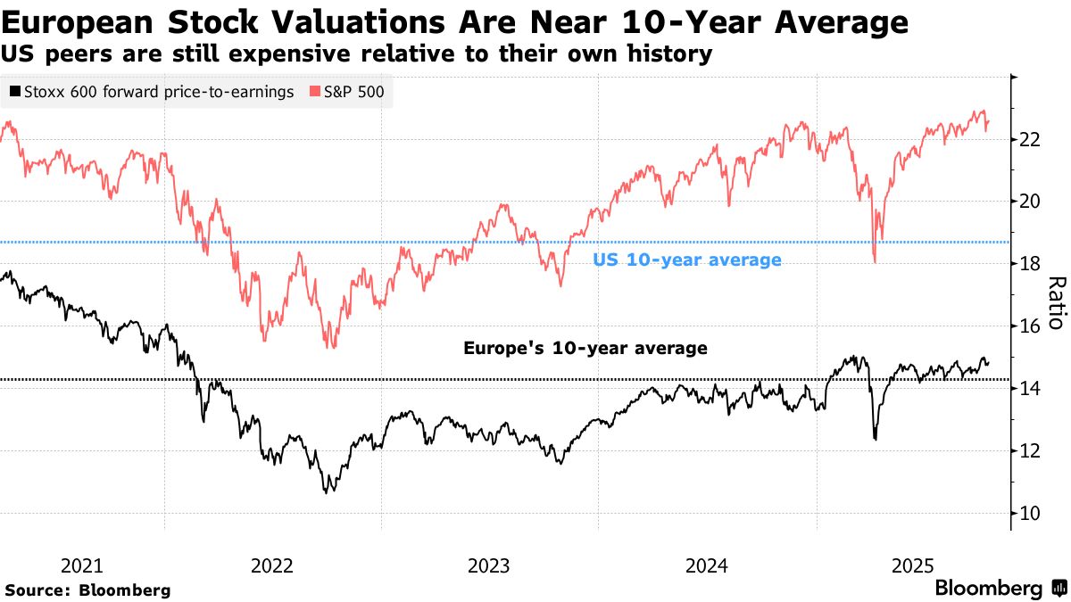 Trong khi đó, Washington và Bắc Kinh một lần nữa vướng vào tranh chấp thương mại, làm dấy lên lo ngại về sự suy thoái kinh tế vĩ mô. Thị trường châu Âu đặc biệt liên quan đến sức khỏe của nền kinh tế vì các ngành công nghiệp như khai thác mỏ và sản xuất ô tô là một phần của chuỗi cung ứng toàn cầu. Các nhà phân tích được Bloomberg Intelligence theo dõi dự đoán lợi nhuận của Stoxx 600 sẽ giảm nhẹ vào năm 2025 trước khi tăng 11% vào năm sau.