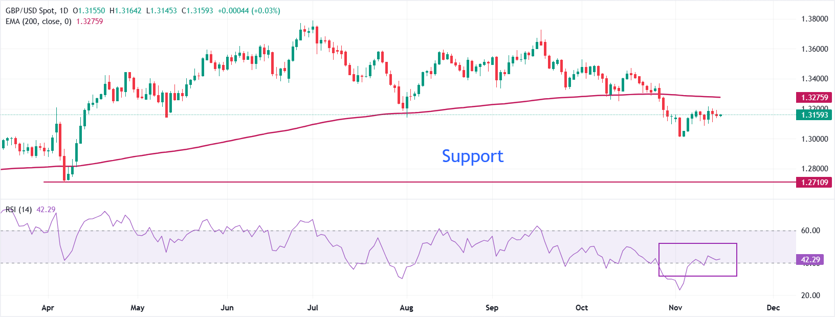 GBP/USD chịu áp lực bán nhẹ so với các cặp tiền chủ chốt trước thềm công bố dữ liệu lạm phát Anh vào thứ Tư. Lạm phát Anh được kỳ vọng giảm nhẹ trong tháng 10. Nhà giao dịch giảm kỳ vọng dovish đối với Fed khi các quan chức cảnh báo về rủi ro lạm phát tăng trở lại.