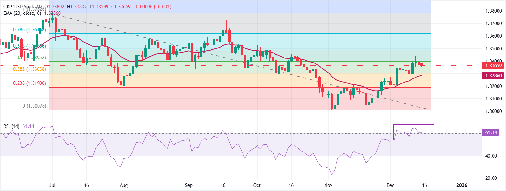 - Nói chung, triển vọng cặp GBP/USD đang lạc quan khi USD vẫn ở gần đáy tám tuần giữa kỳ vọng ngày càng tăng rằng Fed sẽ thực hiện thêm các đợt cắt giảm lãi suất vào năm 2026, vượt qua những gì các quan chức đã báo hiệu trong biểu đồ dot plot tuần trước.