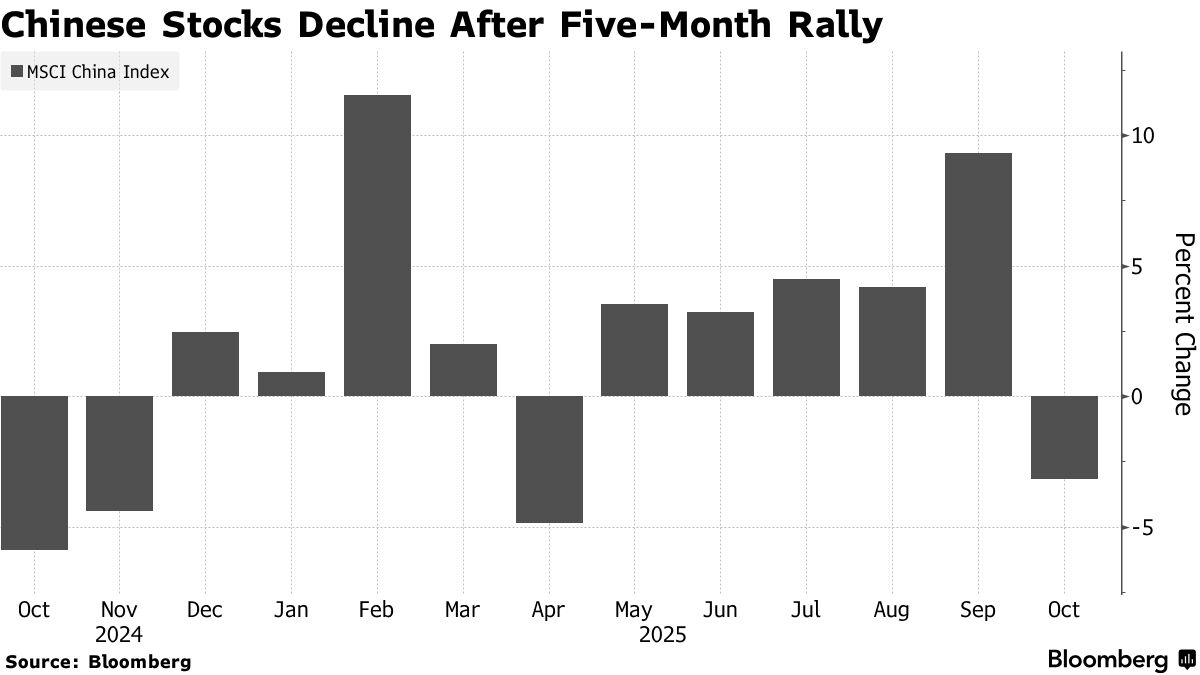 Chỉ số này đã vượt qua mục tiêu đó vào đầu tháng 10 nhưng đã giảm kể từ đó. Nó đang trên đà giảm trong tháng đầu tiên sau sáu tháng sau khi đợt tăng giá nhờ sự lạc quan về trí tuệ nhân tạo hạ nhiệt. Các nhà đầu tư hiện đang theo dõi sát sao cuộc họp toàn thể lần thứ tư trong tháng này và các cuộc đàm phán được mong đợi giữa Tổng thống Mỹ Donald Trump và Chủ tịch Trung Quốc Tập Cận Bình để tìm manh mối về triển vọng của thị trường chứng khoán.