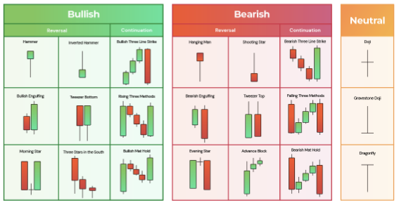 - Mô hình đảo chiều tăng giá: mô hình Hammer, mô hình Inverted Hammer, mô hình Bullish Engulfing, mô hình Piercing Line, mô hình Bullish Harami, mô hình Morning Star,...