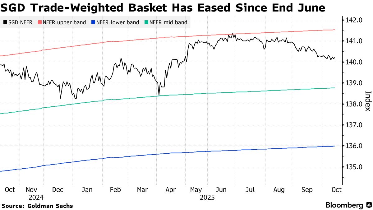 Đồng đô la Singapore đã suy yếu kể từ cuối tháng 6 so với rổ tiền tệ của các đối tác thương mại chính. Tỷ giá hối đoái hiệu dụng danh nghĩa đã rời xa mức cao nhất trong dải chính sách của Cơ quan Quản lý Tiền tệ Singapore (MAS), theo ước tính của Goldman Sachs Group Inc. Các nhà phân tích nhận thấy còn dư địa để đồng đô la Singapore tính theo tỷ trọng thương mại tiếp tục giảm trên Bloomberg Terminal, điều này được dự báo sẽ đẩy lãi suất nội địa tăng cao hơn nữa. Citi nhận thấy sự suy yếu thêm của đồng đô la Singapore so với đồng đô la Mỹ có thể đẩy lãi suất thị trường tiền tệ Singapore tăng lên, theo một ghi chú vào ngày 1 tháng 10.