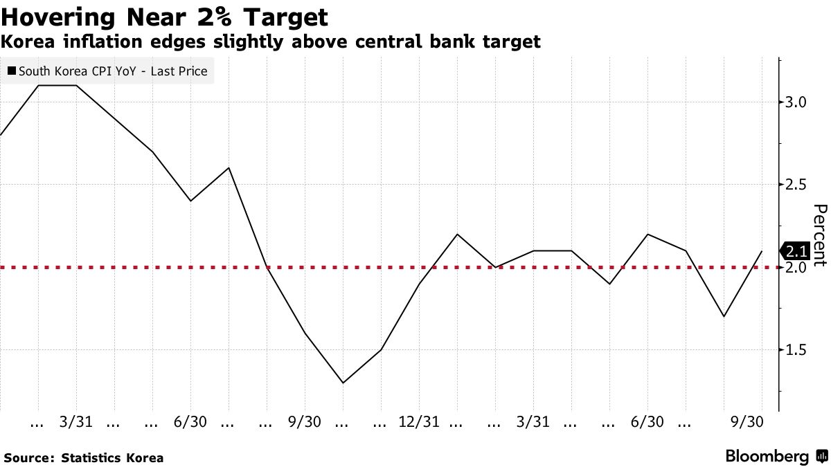 Lạm phát cơ bản, loại trừ giá thực phẩm và năng lượng biến động, tăng 2% sau khi tăng 1.3% trong tháng 8, dữ liệu cho thấy. Cả hai chỉ số hiện đang dao động gần mục tiêu lạm phát 2% của Bank of Korea.