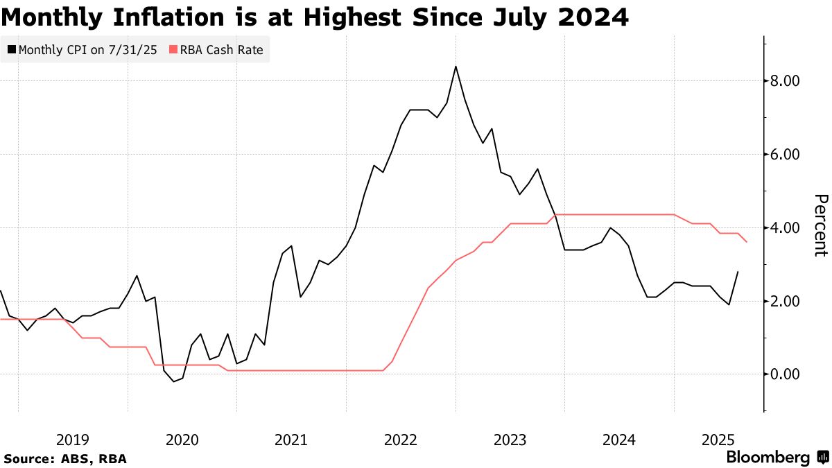 Một chỉ số đo lường lạm phát hàng tháng của Úc đã tăng nhanh hơn dự kiến trong tháng 7, tiến gần hơn đến mức cao nhất trong mục tiêu 2-3% của Ngân hàng Dự trữ Úc và ủng hộ cách tiếp cận giảm lãi suất một cách từ từ.