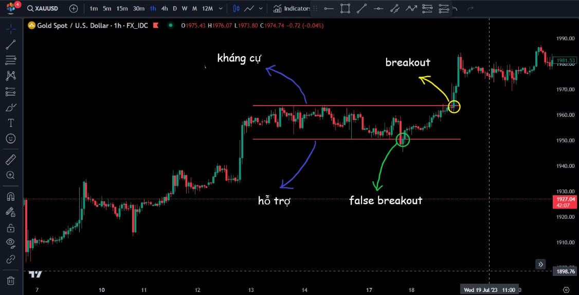 Dù vậy, các nhà đầu tư cũng nên cẩn trọng với các cú “false breakout”, tức là khi các cây nến kiểm tra kháng cự/hỗ trợ của mô hình rồi nhanh chóng quay trở lại trạng thái tích lũy ban đầu.