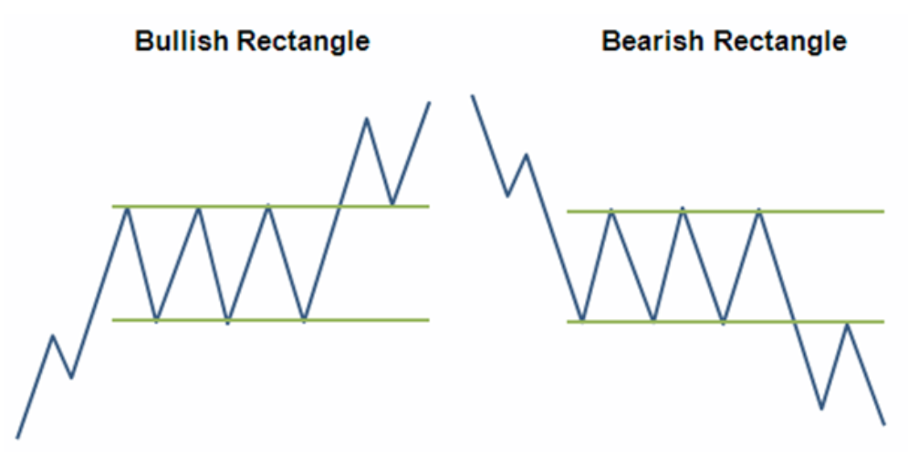 Trong mô hình hình chữ nhật, các cây nến sẽ liên tục kiểm tra các mức hỗ trợ và kháng cự nhiều lần trước khi break out và di chuyển theo xu hướng giá bứt phá. Mô hình chữ nhật được tích lũy trong thời gian càng dài thì khi phá qua kháng cự và hỗ trợ của mô hình, giá sẽ di chuyển với xu hướng càng mạnh.