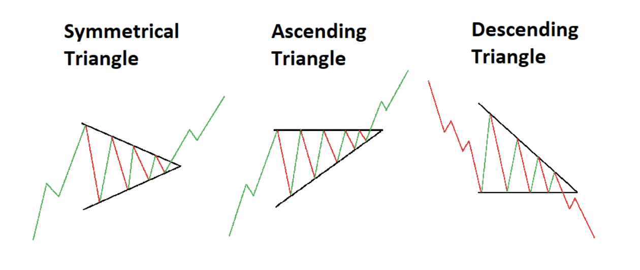 Mô hình tam giác có 3 loại chính là mô hình tam giác cân, mô hình tam giác tăng và mô hình tam giác giảm.