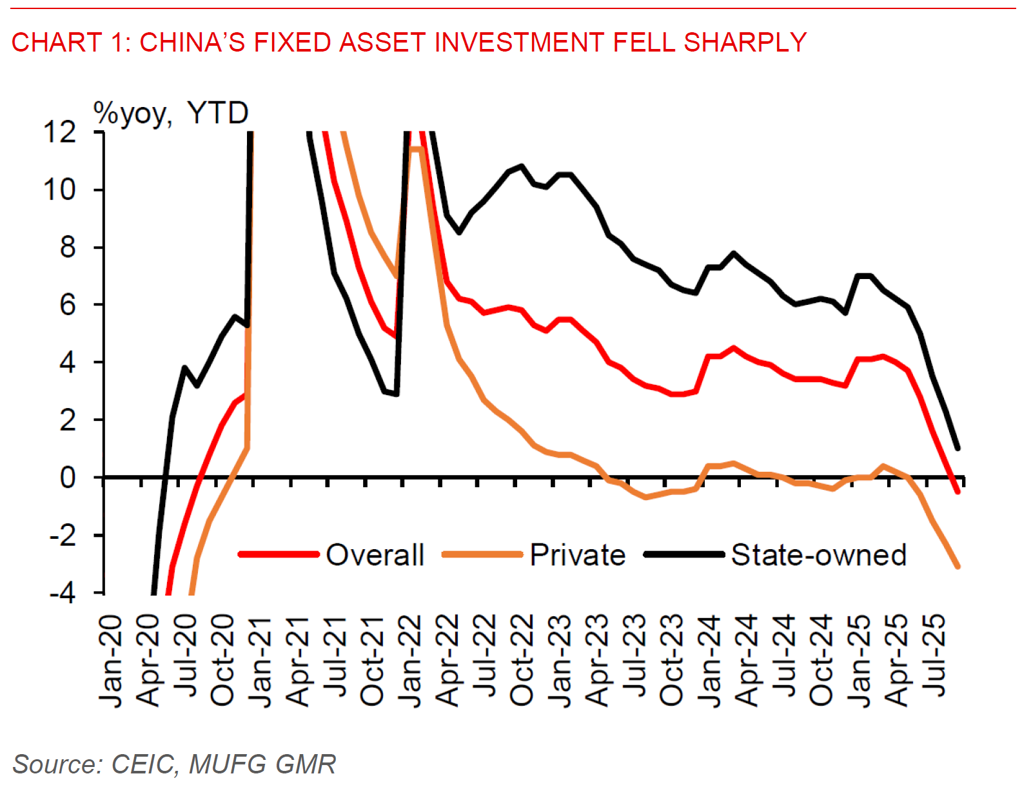 Tâm lý rủi ro trên thị trường được cải thiện, giá vàng phục hồi mạnh, trong khi các đồng tiền châu Á tăng giá. Nhà đầu tư phản ứng khá bình tĩnh trước tiến triển của các cuộc đàm phán thương mại Mỹ - Trung, đồng thời chờ đợi Hội nghị Toàn thể lần thứ tư của Trung Quốc và Đề xuất Kế hoạch 5 năm lần thứ 15, dự kiến diễn ra vào cuối tuần này. Trung Quốc vừa công bố số liệu kinh tế quý 3 và tháng 9, tiếp tục phản ánh bức tranh tăng trưởng thiếu cân đối . Đáng chú ý, GDP quý 3 tăng vượt kỳ vọng, nhưng chi tiết số liệu cho thấy đầu tư sụt giảm mạnh, trong khi chi tiêu tiêu dùng chậm lại khi chương trình đổi xe cũ lấy tiền mặt dần mất tác dụng. Ngược lại, xuất khẩu và sản xuất công nghiệp vẫn duy trì đà tăng tốt, nhờ sự đa dạng hóa thị trường xuất khẩu sang các khu vực như châu Phi, Đông Nam Á và Mỹ Latinh.