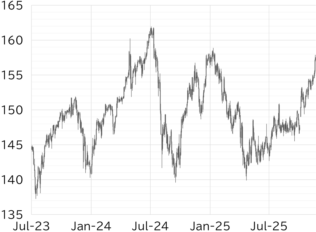 Cặp USD/JPY mở cửa ở mức 154.61, gần đáy tuần. Cặp tiền này tăng nhẹ vào ngày 17 tháng 11, được hỗ trợ bởi tin tức rằng Thủ tướng Sanae Takaichi và Thống đốc BOJ Kazuo Ueda sẽ tổ chức cuộc họp vào ngày 18 tháng 11. Cặp tiền này đã tăng lên mức 155 trong giờ giao dịch tại Mỹ. Xuất hiện một đợt mua yên ngắn hạn sau cuộc họp ngày 18 tháng 11 và đẩy USD/JPY tạm thời xuống dưới 155, nhưng xu hướng tăng tiếp tục khi kỳ vọng về việc Fed cắt giảm lãi suất giảm dần đã hỗ trợ đồng đô la. Vào ngày 19 tháng 11, Bộ trưởng Tài chính Satsuki Katayama, Bộ trưởng Chính sách Kinh tế và Tài chính Minoru Kiuchi, và Thống đốc Ueda đã tổ chức các cuộc thảo luận vào đầu buổi tối. Hoạt động bán yên tăng cường sau khi Katayama nói rằng không có vấn đề tỷ giá nào được thảo luận, và cặp tiền này đã vượt mốc 156. Xu hướng tăng tiếp tục, cặp tiền tăng lên mức 157 khi hoạt động mua đô la tăng tốc do tin tức rằng báo cáo việc làm tháng 11 của Mỹ sẽ được công bố sau cuộc họp FOMC tháng 12, và sau khi biên bản cuộc họp FOMC tháng 10 cho thấy sự thận trọng gia tăng đối với việc cắt giảm lãi suất thêm. Vào ngày 20 tháng 11, giá cổ phiếu tăng mạnh nhờ kết quả kinh doanh ấn tượng từ một nhà sản xuất bán dẫn lớn của Mỹ, đẩy USD/JPY lên mức 157.90. Tuy nhiên, cặp tiền này không đạt mức 158, và bình luận của Bộ trưởng Tài chính Katayama vào ngày 21 tháng 11 rằng 'can thiệp là một lựa chọn' đã giúp giữ USD/JPY dưới mức 157.50 (Hình 1). Trong số các đồng tiền G10 tuần này, kỳ vọng giảm dần về việc Fed cắt giảm lãi suất đã tạo ra sức mạnh rộng rãi cho đồng đô la. Đồng yên suy yếu trên diện rộng, với EUR/JPY tăng lên mức 182 (Hình 2).