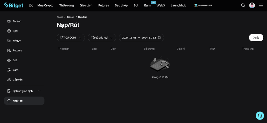 - Tiền được ghi nhận vào tài khoản Bitget chỉ trong vài chục giây.