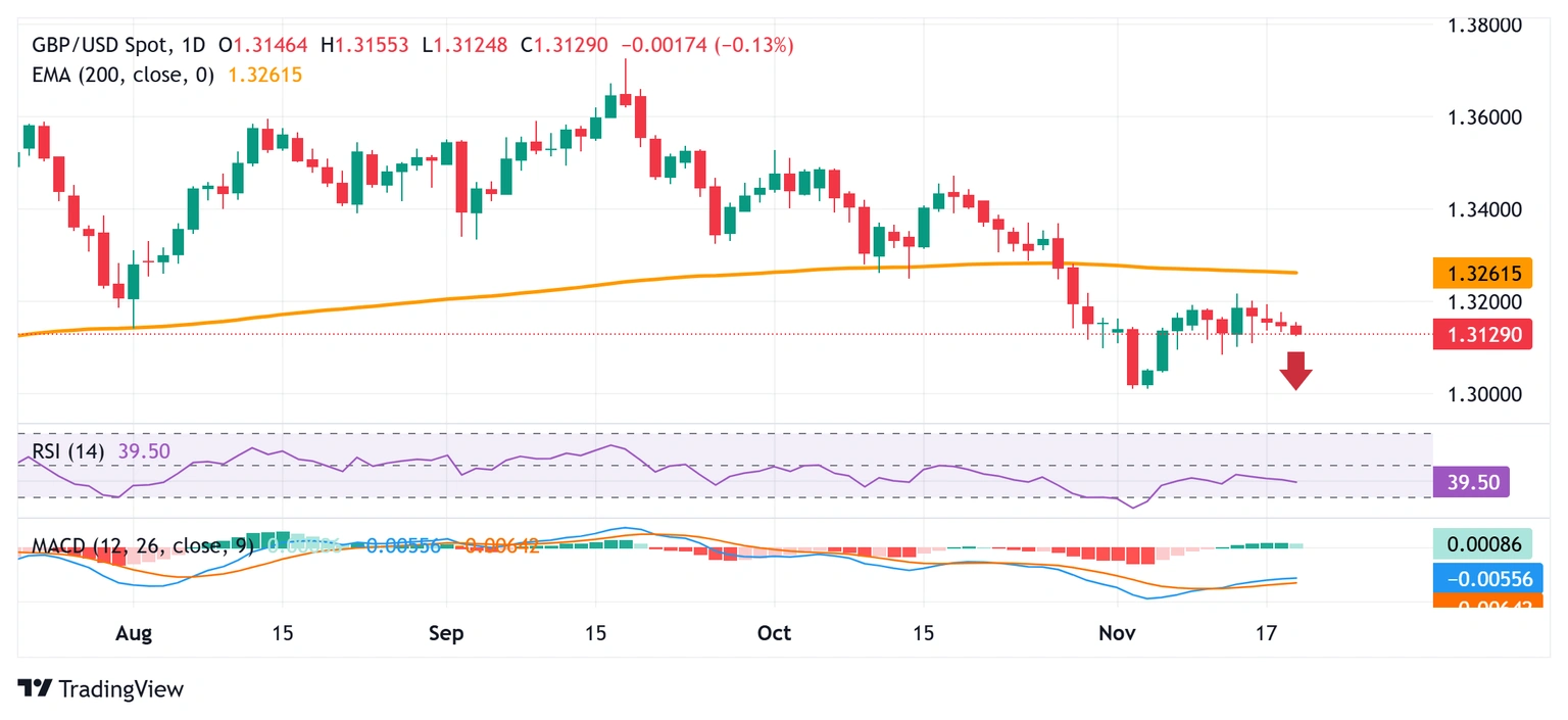 Đồng thời, sự không chắc chắn liên quan đến Ngân sách Mùa thu của Bộ trưởng Tài chính Anh Rachel Reeves vào ngày 26 tháng 11 đang hạn chế đà tăng của GBP/USD. Mặc dù kế hoạch tăng thuế thu nhập đã được rút lại sau dự báo lạc quan hơn từ OBR — cho thấy khoảng cách tài khóa gần 20 tỷ bảng, thấp hơn nhiều so với lo ngại 30 tỷ bảng — phản ứng từ thị trường trái phiếu vẫn thể hiện sự lo ngại về định hướng tài khóa trong bối cảnh tăng trưởng kinh tế yếu hướng đến 2026. Điều này mang lại lợi thế cho phe bán GBP và có thể tiếp tục gây áp lực lên cặp GBP/USD.