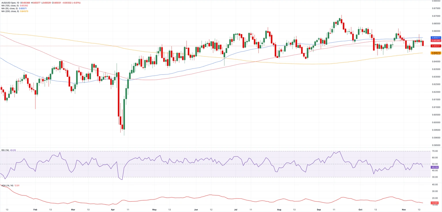 AUD/USD tiếp tục mắc kẹt trong phạm vi kéo dài nhiều tuần, khi các nhịp tăng còn thiếu thuyết phục trong khi phía giảm vẫn giữ trên đường SMA 200 ngày – ngưỡng kỹ thuật quan trọng.