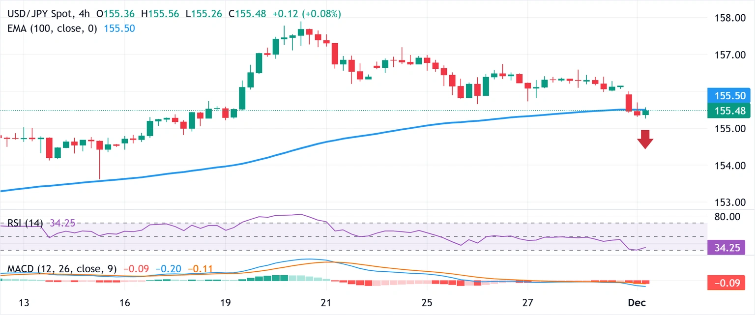 Ở chiều ngược lại, bất kỳ nhịp phục hồi nào cũng sẽ đối mặt với rào cản gần nhất tại mức tròn 156.00. Nếu vượt qua được vùng này, đà phục hồi có thể kích hoạt lực mua từ vị thế bán khống, hướng giá lên vùng 156.65-156.70. Trên mức này, USD/JPY có khả năng quay lại mốc 157.00 trước khi mở rộng đà tăng về vùng cản trung gian 157.45-157.50 và sau đó là mức đỉnh nhiều tháng quanh khu vực 158.00 – được thiết lập vào tháng 11.