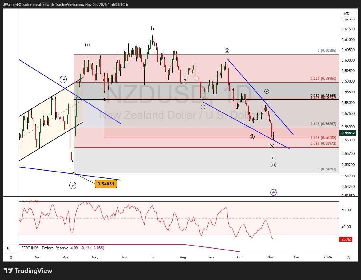 Theo mô hình sóng Elliott đang được theo dõi, NZD/USD đang ở giai đoạn cuối của mô hình phẳng mở rộng dạng a-b-c. Sóng ‘c’ có vẻ đang hình thành dưới dạng một diagonal kết thúc.
