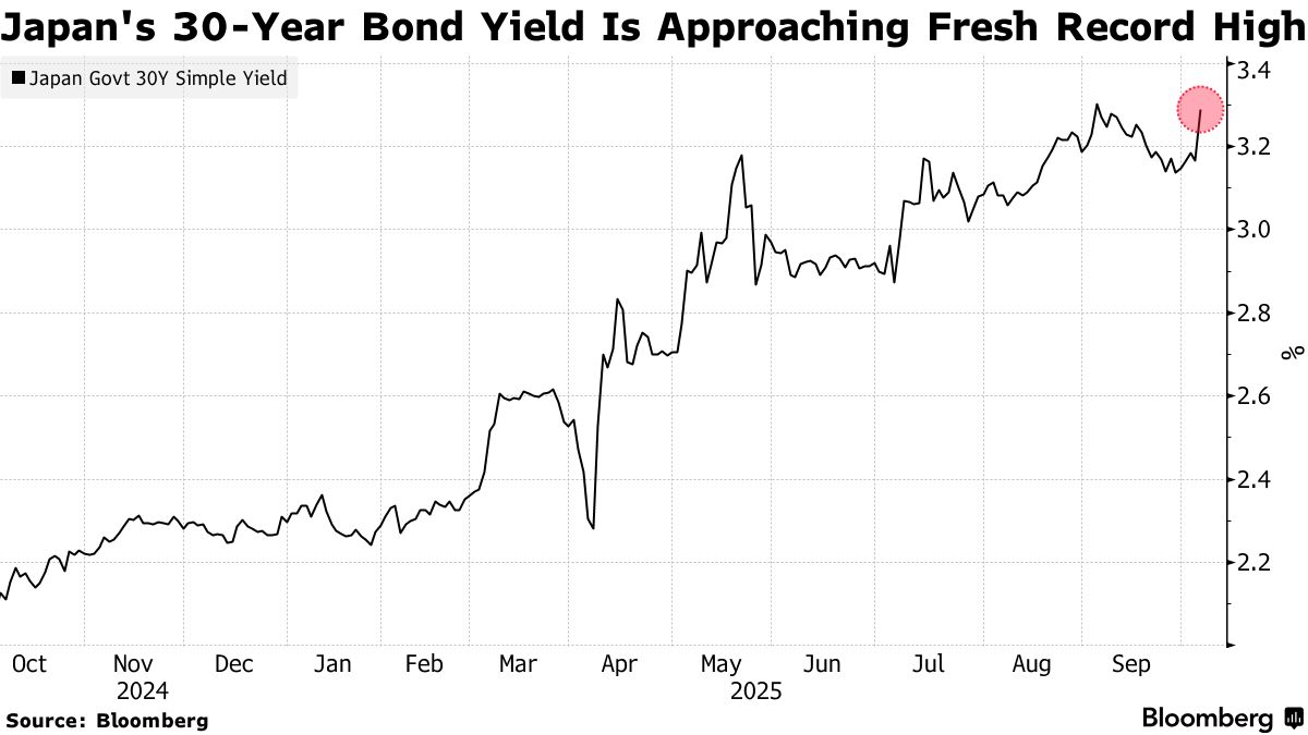 Lợi suất kỳ hạn 30 năm của Nhật Bản đã tăng lên khoảng 3.28%, chỉ còn cách mức cao kỷ lục một chút. Mức đó có thể thu hút một số người mua, đặc biệt khi chính phủ đã công bố kế hoạch giảm thêm lượng phát hành trái phiếu siêu dài hạn, mặc dù điều đó có thể không đủ để ổn định nhu cầu.