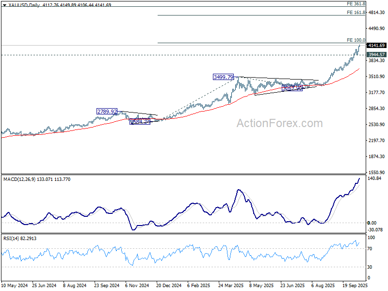 Về mặt kỹ thuật, mục tiêu gần nhất của vàng nằm tại 100% dự báo từ 2,584.24 lên 3,499.79 từ 3,267.90 tại 4,183.45 USD. Tại đây có thể xuất hiện kháng cự, khiến một số nhà đầu tư chốt lời. Việc phá dưới mức hỗ trợ 3,944.57 USD sẽ báo hiệu đỉnh ngắn hạn và giai đoạn tích lũy. Tuy nhiên, nếu duy trì trên 4,183.45 USD, vàng có thể tiến tới mức dự báo 161.8% tại 4,749.25 USD.