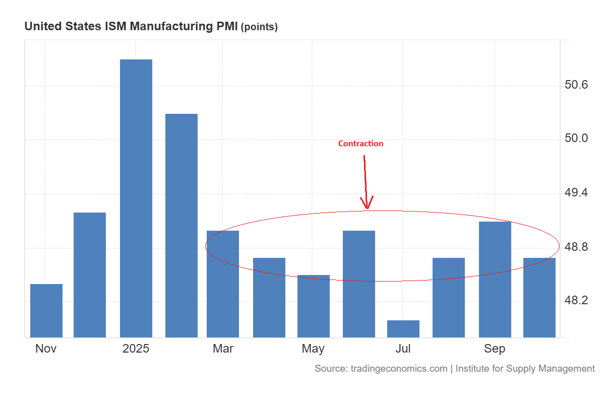 Dữ liệu việc làm tháng 10 tiếp tục làm gia tăng bất ổn. Báo cáo ADP cho thấy khu vực tư nhân chỉ tạo ra 42.000 việc làm mới, mức thấp nhất trong nhiều tháng, do dòng nhập cư chậm lại và các điều chỉnh dữ liệu trước đó.