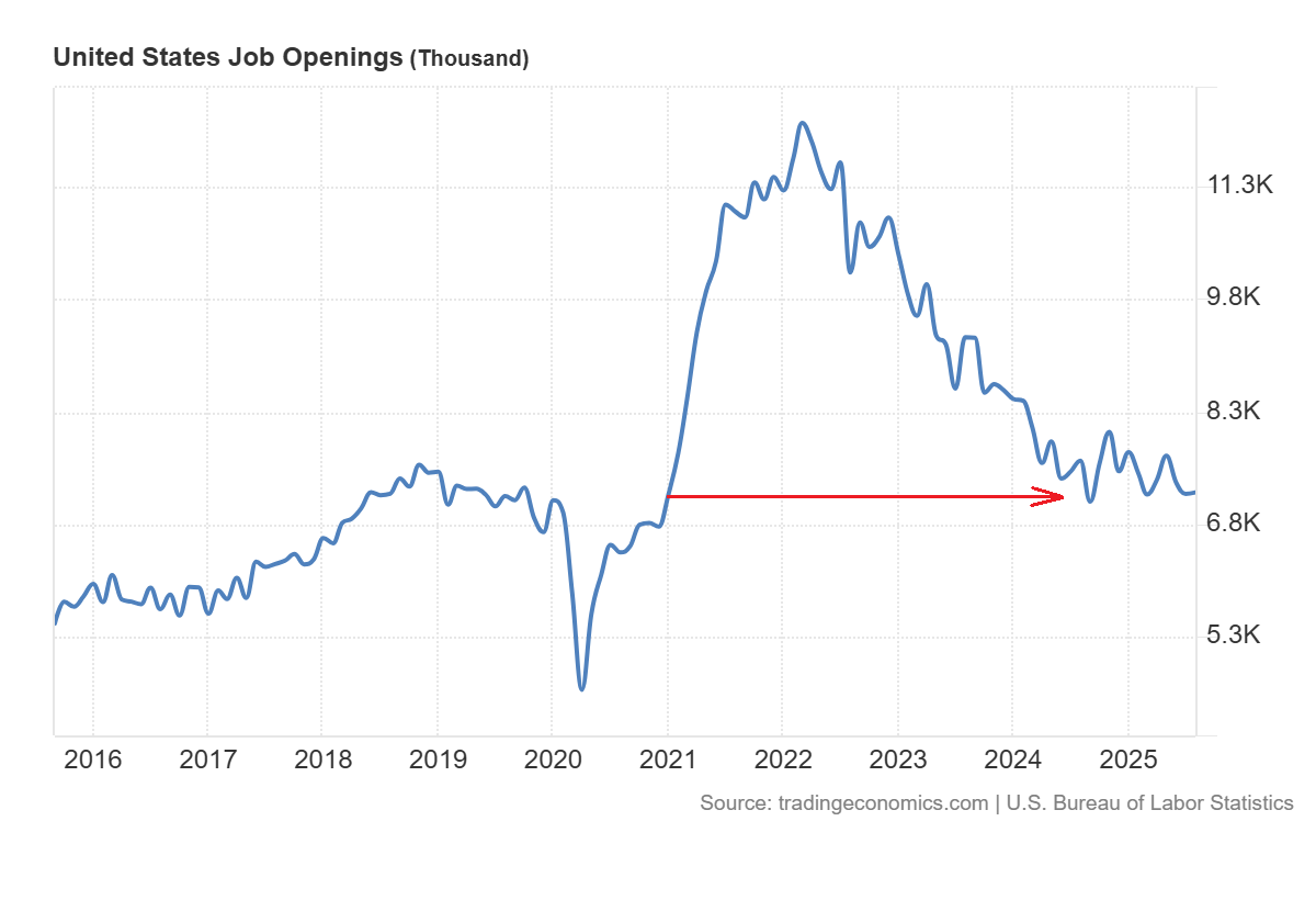 Số lượng vị trí việc làm còn mở hiện ở gần mức đầu năm 2020, phản ánh nhu cầu lao động yếu đi.