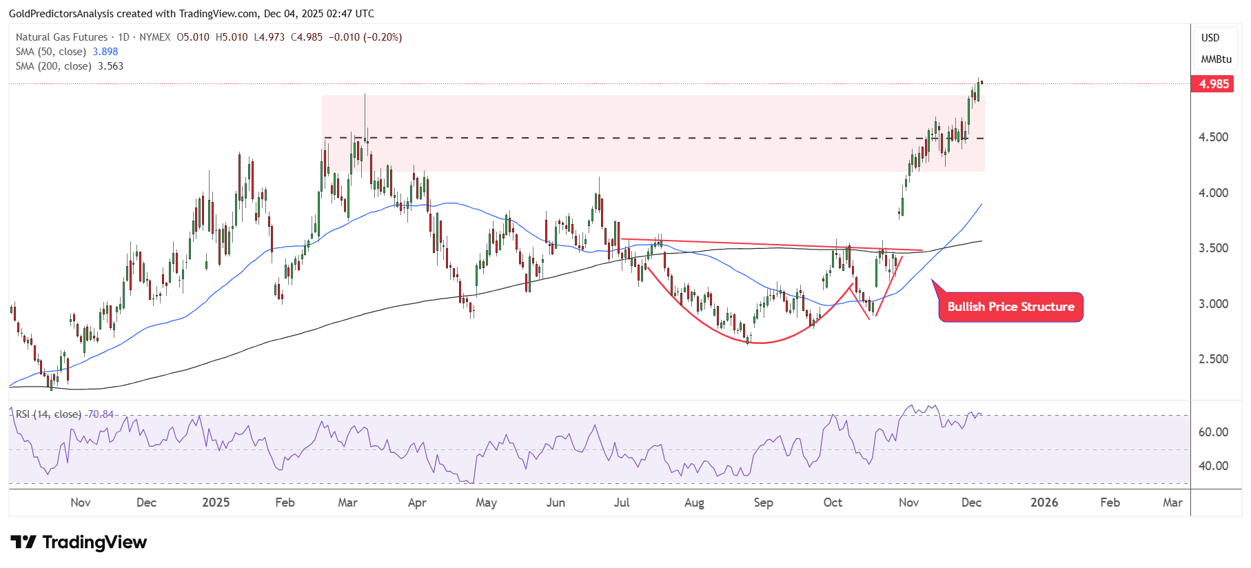 Biểu đồ khung 4 giờ khí tự nhiên – Động lượng tăng