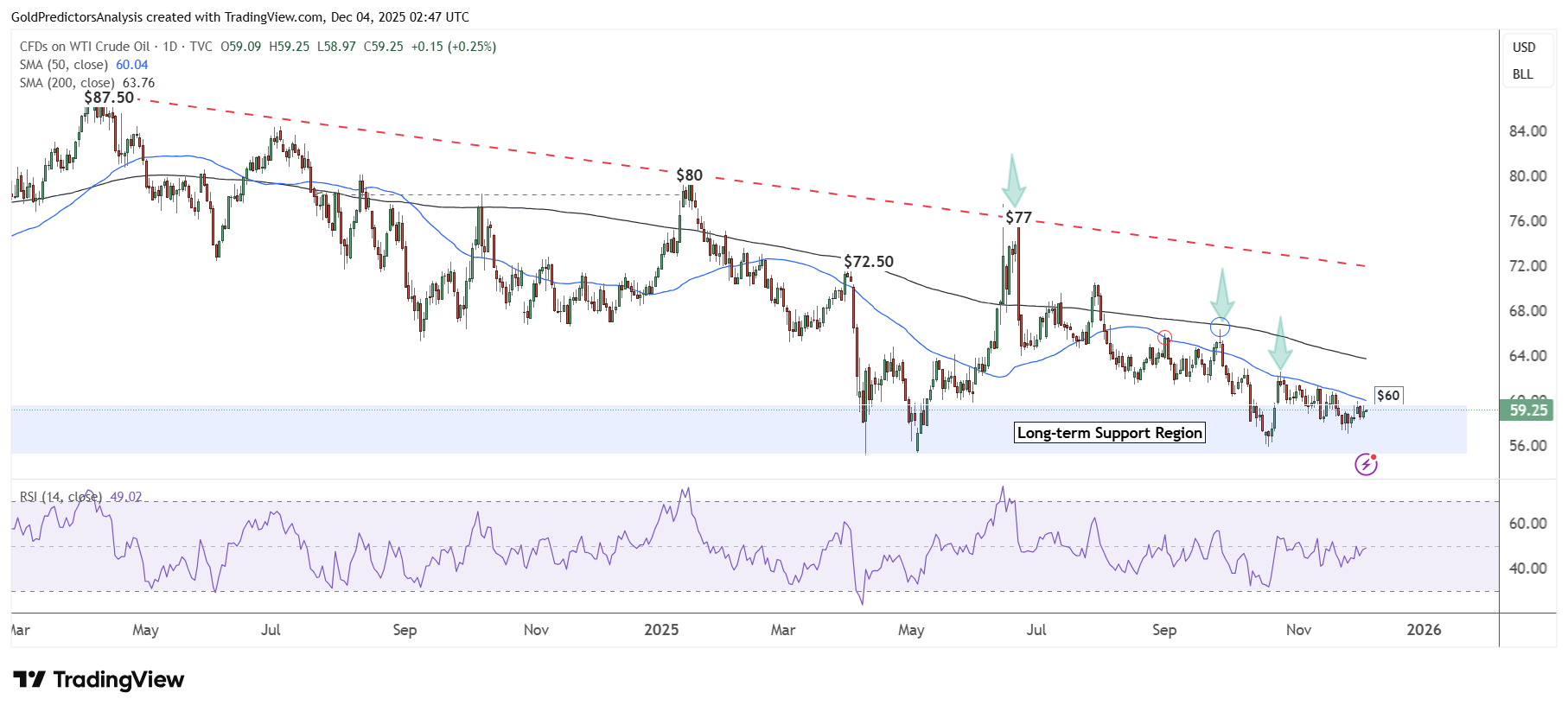 Biểu đồ khung ngày dầu WTI – Tích lũy tại vùng hỗ trợ dài hạn