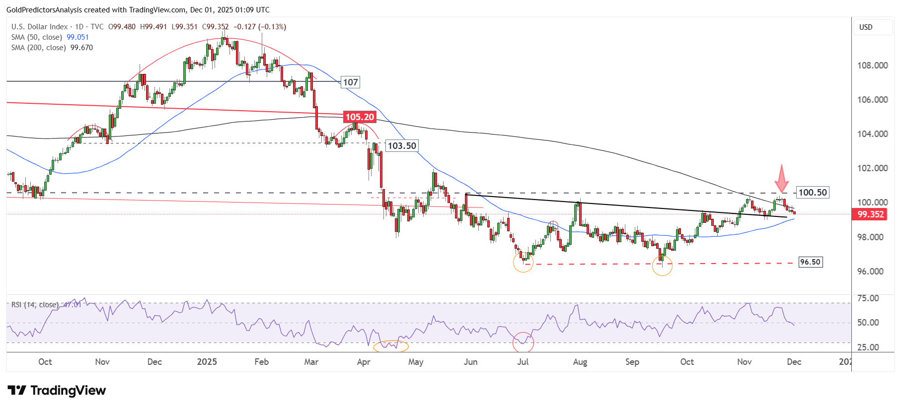 Biểu đồ khung ngày Chỉ số USD – Kháng cự quan trọng tại 100.50