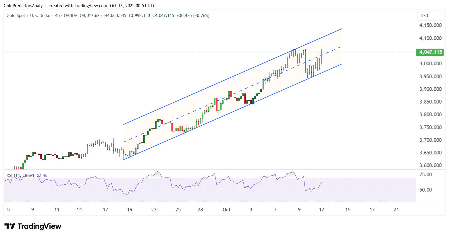 Biểu đồ 4 giờ XAU/USD – Kênh tăng