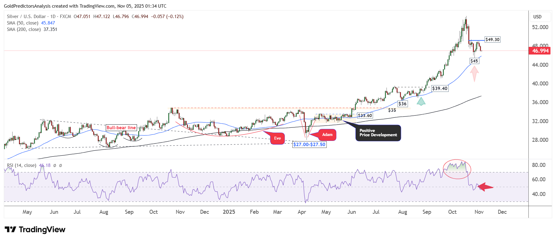 Biểu đồ hàng ngày XAG/USD – Giai đoạn điều chỉnh