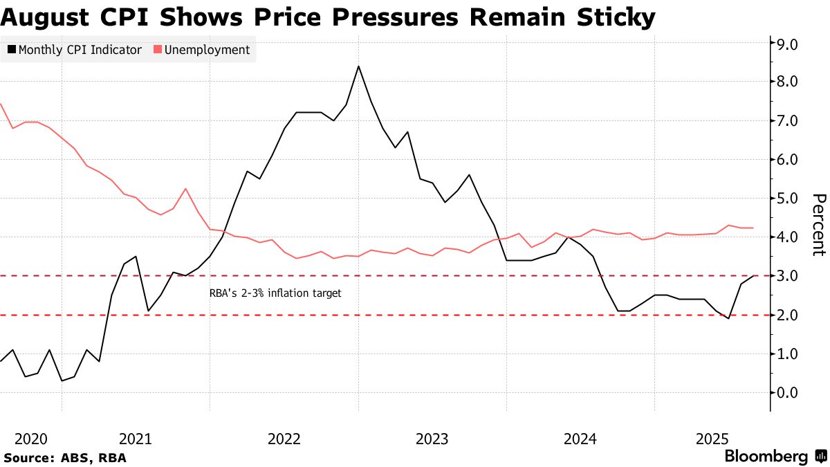 Ngân hàng Dự trữ Úc (RBA) đã giữ nguyên lãi suất tiền mặt ở mức 3.6% sau khi các chỉ số giá tiêu dùng (CPI) hàng tháng tăng liên tiếp cho thấy lạm phát có thể mạnh hơn dự báo gần đây nhất của nhân viên, theo biên bản cuộc họp ngày 29-30 tháng 9 được công bố vào thứ Ba. RBA cho biết mặc dù các số liệu CPI hàng tháng là 'một phần và biến động', nhưng kết quả trong lĩnh vực nhà ở và dịch vụ thị trường cho thấy nguy cơ áp lực giá tăng cao.