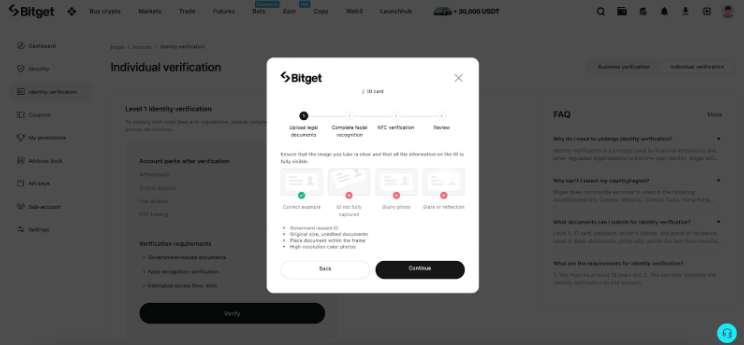 KYC là bước quan trọng giúp Bitget bảo vệ bạn khỏi các rủi ro lừa đảo và tuân thủ quy định chống rửa tiền.