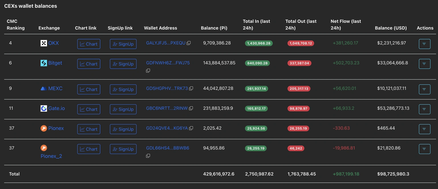 Dữ liệu PiScan ghi nhận lượng token PI được nạp vào các CEX đã xác minh KYB trong 24 giờ đạt 2.75 triệu token, trong khi lượng rút ra chỉ ở mức 1.76 triệu token. Chênh lệch dương này cho thấy dòng tiền vào ròng tại CEXs và phản ánh tâm lý giảm thiểu rủi ro kéo dài của nhà đầu tư.