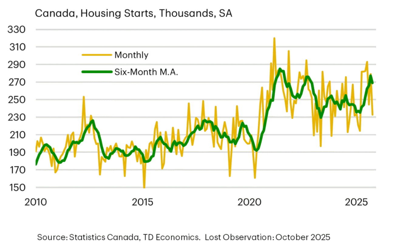 Điều này thiết lập bối cảnh cho báo cáo GDP quý 3 sắp công bố. Các nhà phân tích tại TD Bank kỳ vọng tăng trưởng trong khoảng 0.5% đến 1.0% theo quý (tính theo năm). Tuy nhiên, nhận định này chịu ảnh hưởng bởi việc chính phủ Hoa Kỳ đóng cửa khiến dữ liệu thương mại Canada bị trì hoãn. Khi thương mại biến động mạnh trong quý 2, đây là đầu vào quan trọng cho dự báo—vì vậy sự thiếu vắng dữ liệu làm tăng thêm bất định. Họ đang chờ thông tin về thời điểm công bố cũng như liệu GDP quý 3 của Statistics Canada sẽ bao gồm số liệu thực tế hay dùng ước tính riêng.