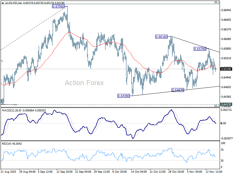 Xu hướng trong ngày của AUD/USD vẫn trung tính khi giao dịch đi ngang. Ở chiều giảm, phá 0.6457 sẽ mở đường về cụm 0.6413 (vùng 38.2% hồi từ 0.5913 lên 0.6706 tại 0.6403). Phá vỡ dứt khoát vùng này sẽ mang hàm ý giảm sâu hơn. Ở chiều tăng, vượt 0.6579 sẽ kích hoạt nhịp tăng mạnh lên kháng cự 0.6616. Phá vững khu vực đó sẽ mở ra khả năng kiểm định lại đỉnh 0.6706.