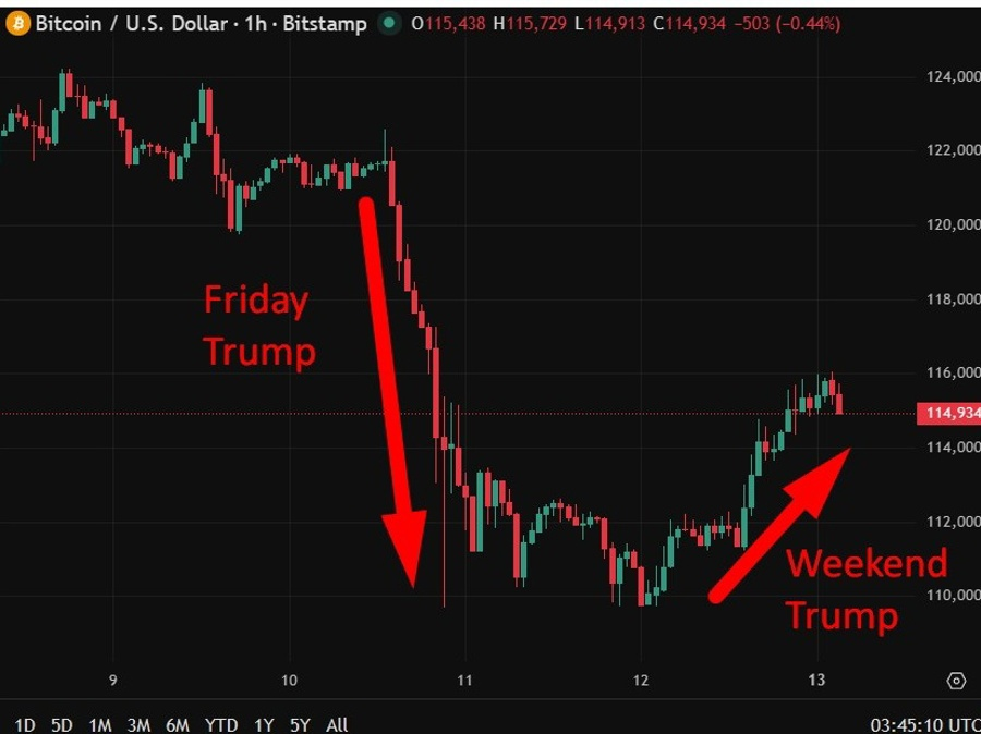 Câu chuyện lớn nhất hôm thứ Sáu là lời đe dọa của ông Donald Trump về việc áp thêm 100% thuế quan lên toàn bộ hàng nhập khẩu từ Trung Quốc, một động thái đã khiến thị trường toàn cầu lao dốc — trong đó tài sản tiền điện tử bị ảnh hưởng đặc biệt nặng nề.