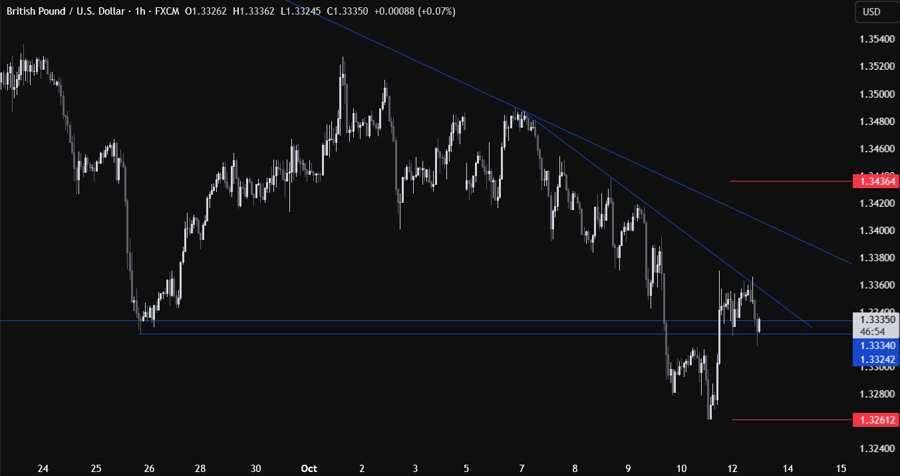 Anh vẫn đối mặt với áp lực giá cao do CPI lõi, tiền lương và kỳ vọng lạm phát của người tiêu dùng đều duy trì ở mức cao. Trên thị trường, GBP/USD đã có thời điểm xuyên thủng vùng hỗ trợ 1.3334 nhưng nhanh chóng bật lại khi USD suy yếu.