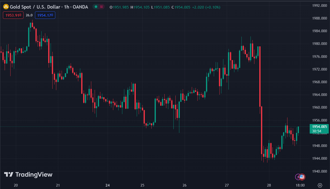 Lợi suất đồng loạt giảm đã hỗ trợ vàng hồi lại nửa mức giảm sâu của phiên thứ Năm sau khi trở lại lên trên $1963/oz. Chốt phiên, kim loại quý tăng $13.40 lên gần $1960/oz. Trên thị trường trái phiếu, lợi suất 2 năm và 10 năm lần lượt giảm 5.2bp và 5.1bp xuống 4.881% và 3.953%. Dầu thô hồi mạnh lên trên 80.70/thùng trong đêm sau khi giảm hơn $1 đầu phiên Mỹ. Chốt phiên, dầu WTI tăng $0.49 lên $80.58/thùng. BTC gần như đi ngang quanh vùng 29.3K trong ba ngày giao dịch cuối tuần, sau khi vượt mức 29.5K tối thứ Sáu và điều chỉnh giảm xuống 29K về gần cuối phiên Chủ Nhật.