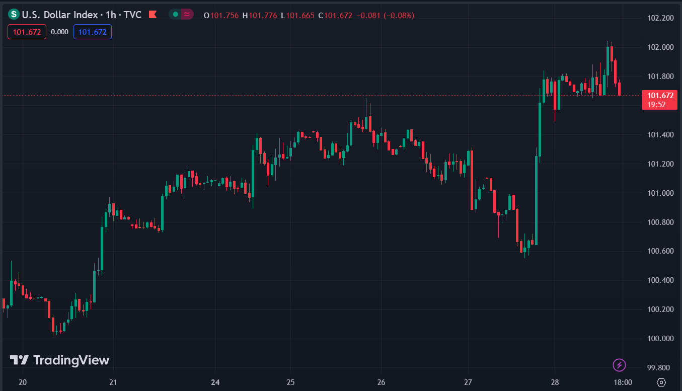 USD suy yếu. DXY giảm xuống dưới 101.70