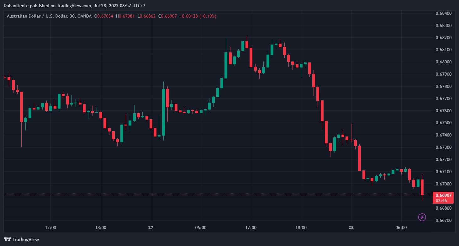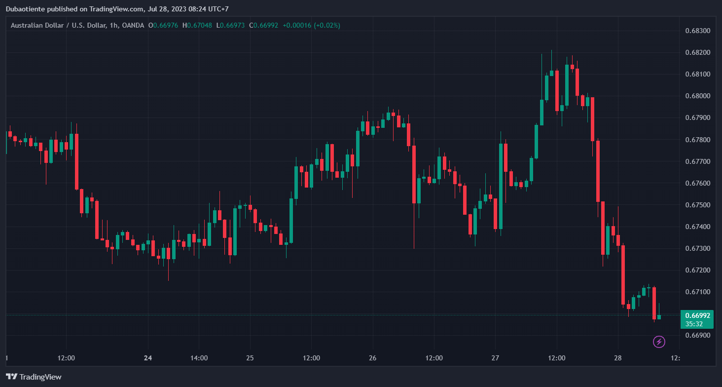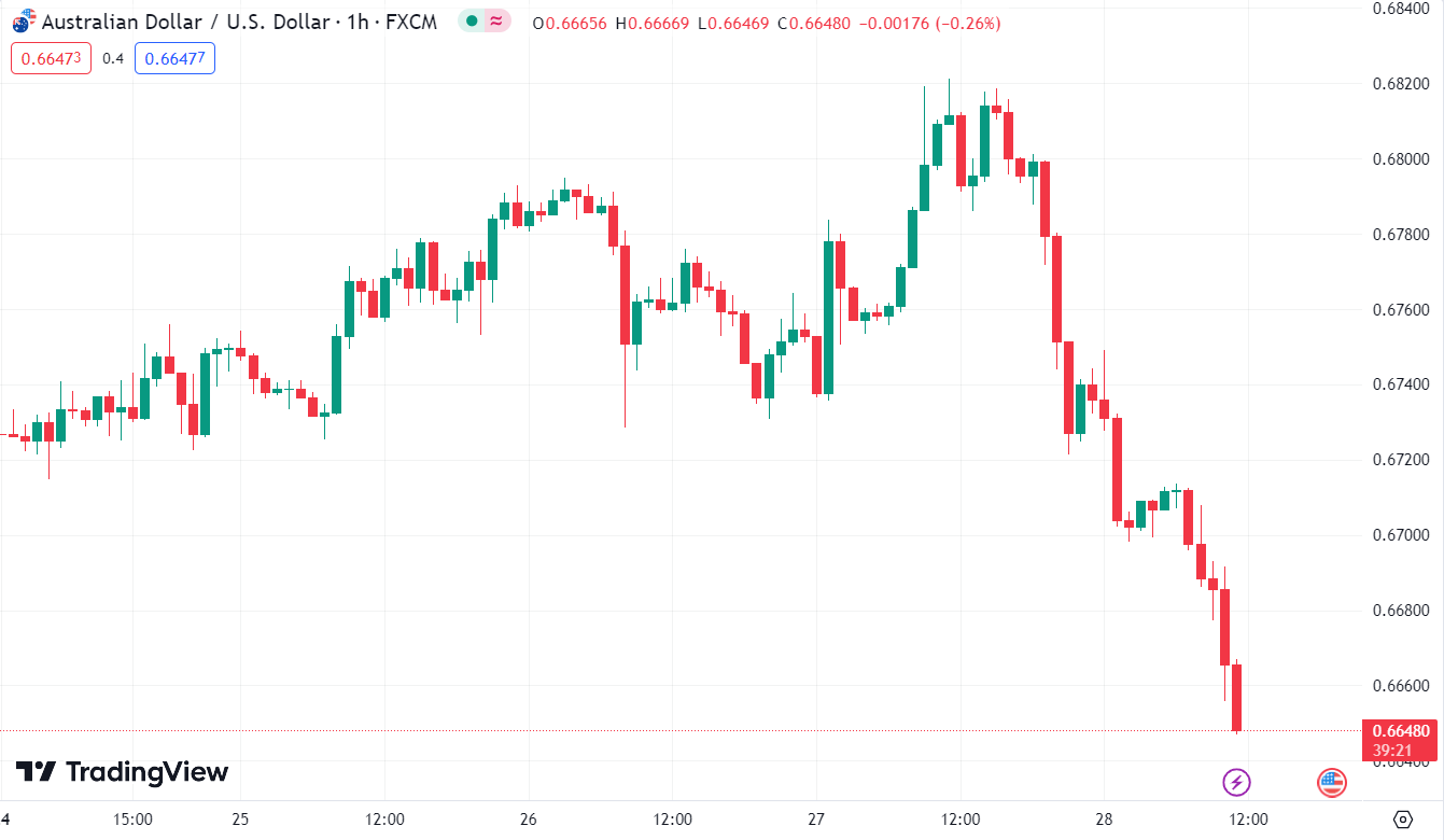 AUDUSD tiếp tục giảm xuống mức 0.66480.