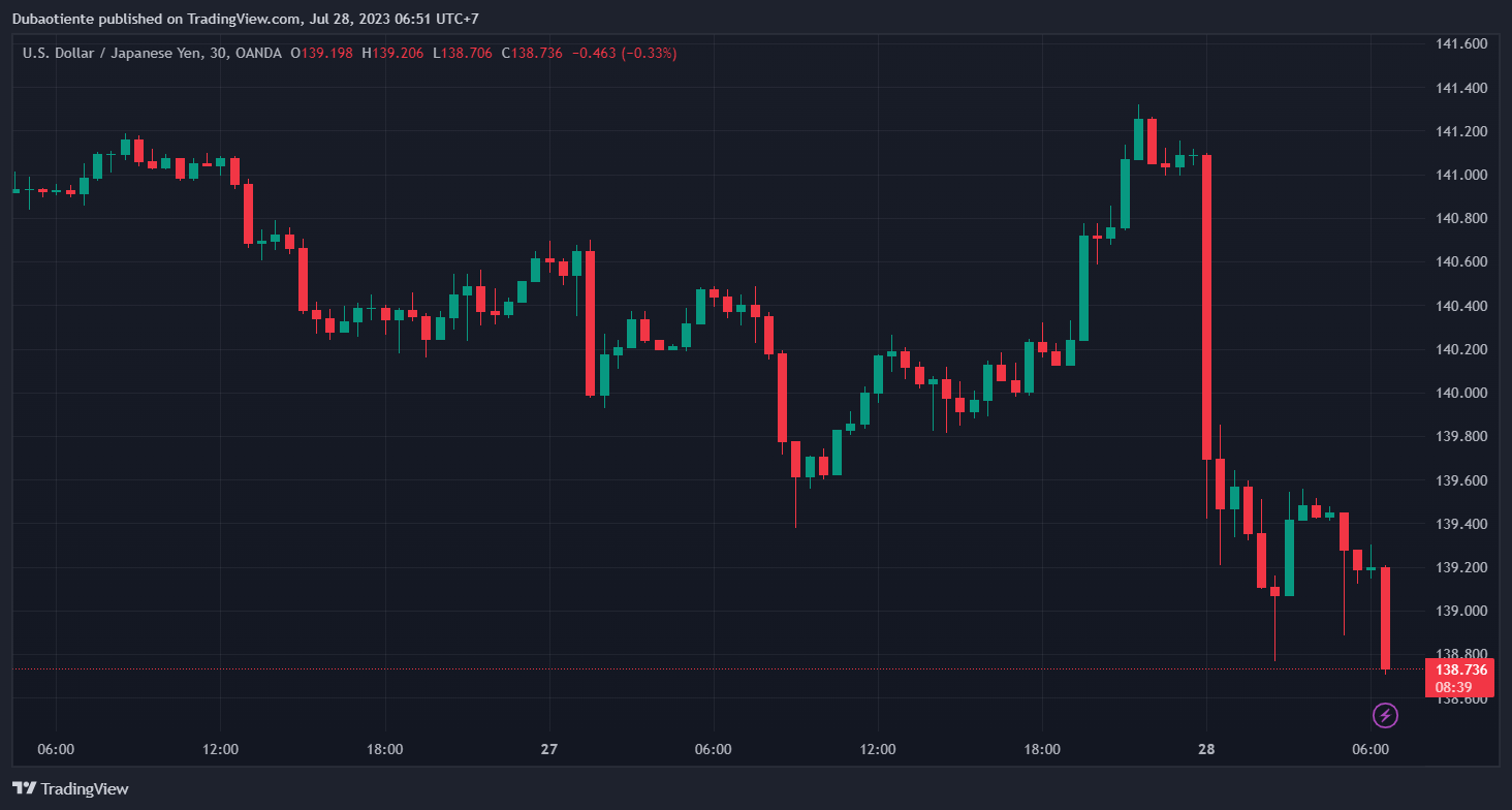 Sau khi BOJ tuyên bố giữ nguyên chính sách kiểm soát đường cong lợi suất và chính sách tiền tệ, USDJPY tăng vọt lên trên mức 141.00 nhưng hiện đã thoái lui xuống 139.551..