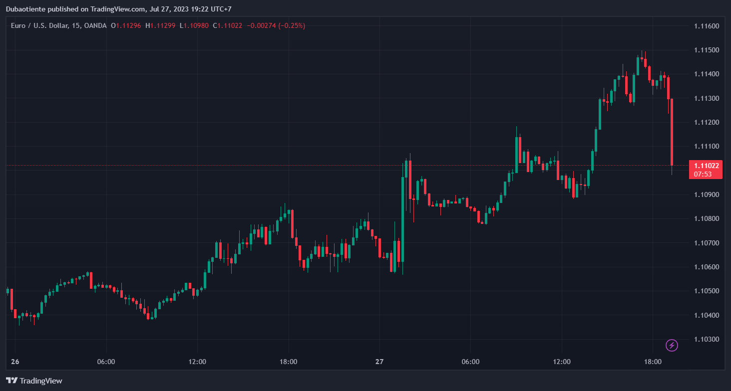 Fed đã tăng lãi suất thêm 25bp vào ngày hôm qua như dự kiến và không thay đổi gì trong tuyên bố chính sách. Thị trường muốn xem liệu Chủ tịch Fed Powell có thể đưa ra một số gợi ý về các động thái tiếp theo hay không, nhưng thật không may, ông chỉ nhắc lại rằng họ sẽ phụ thuộc vào dữ liệu và tất cả các lựa chọn đều được cân nhắc cho cuộc họp tháng 9.
