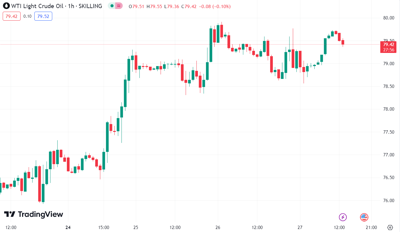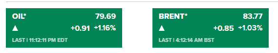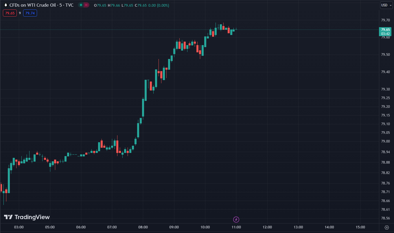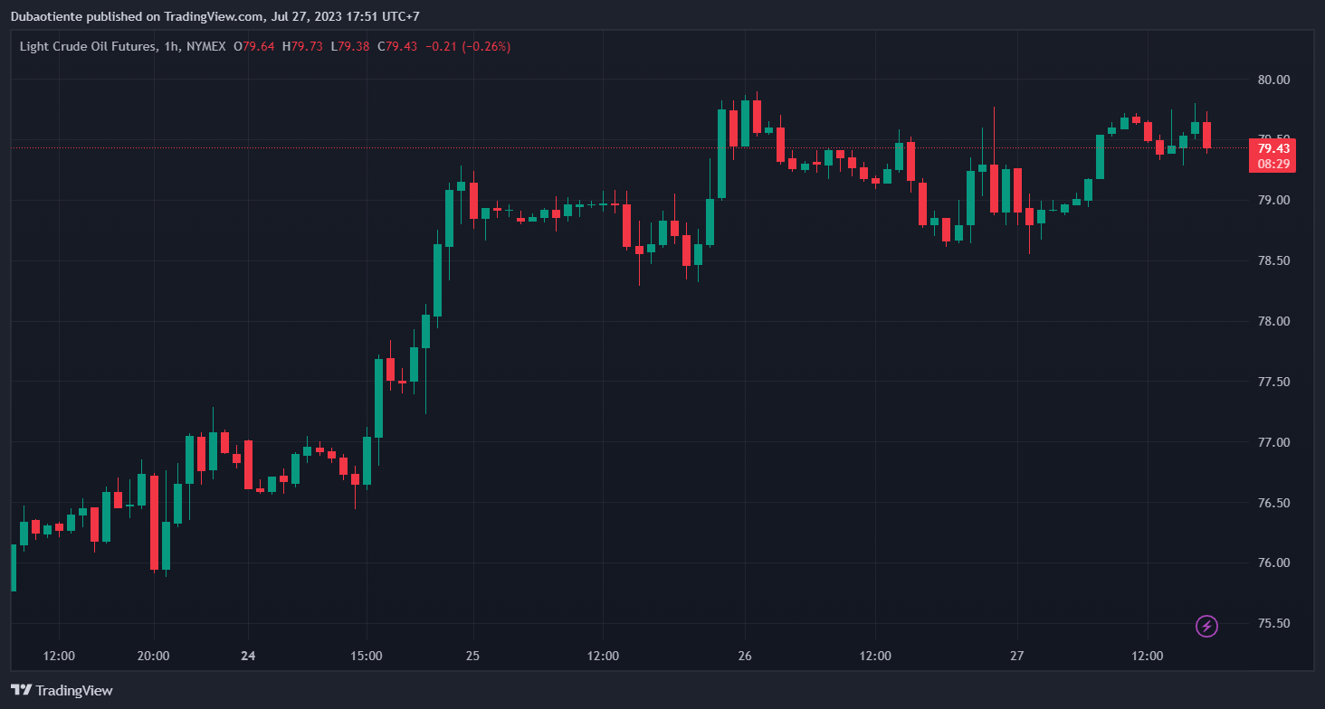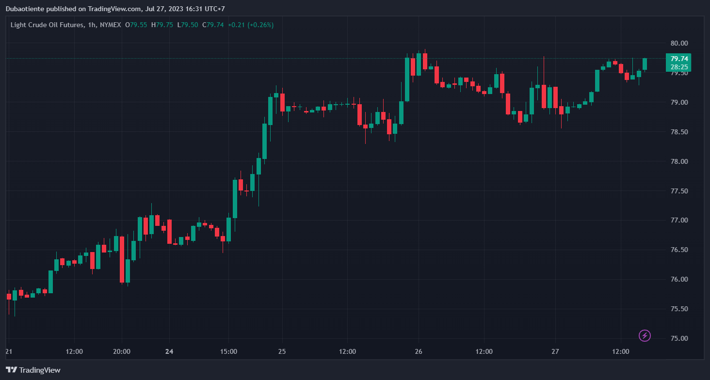 Giá dầu tăng vọt hơn 1% hiện giao dịch ở mức $79.65/thùng