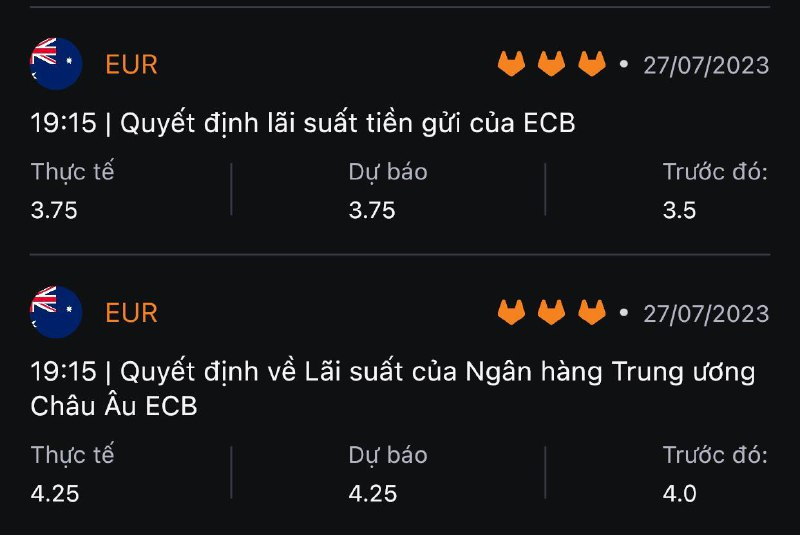 17:00 - ECB công bố quyết định chính sách tiền tệ tháng 7