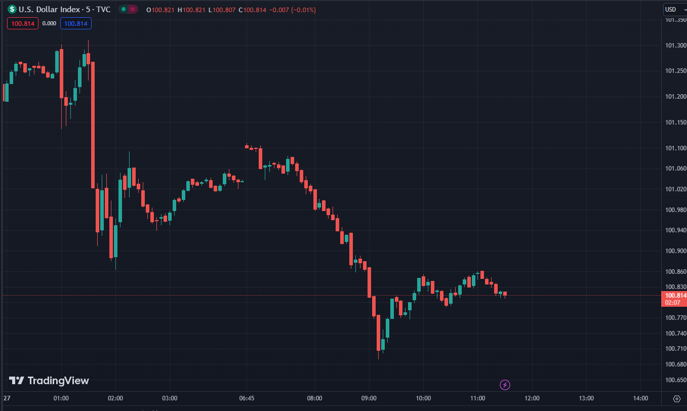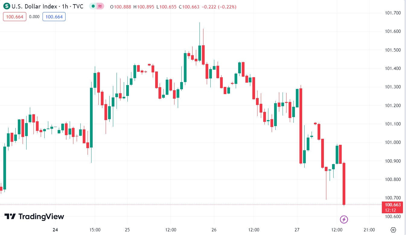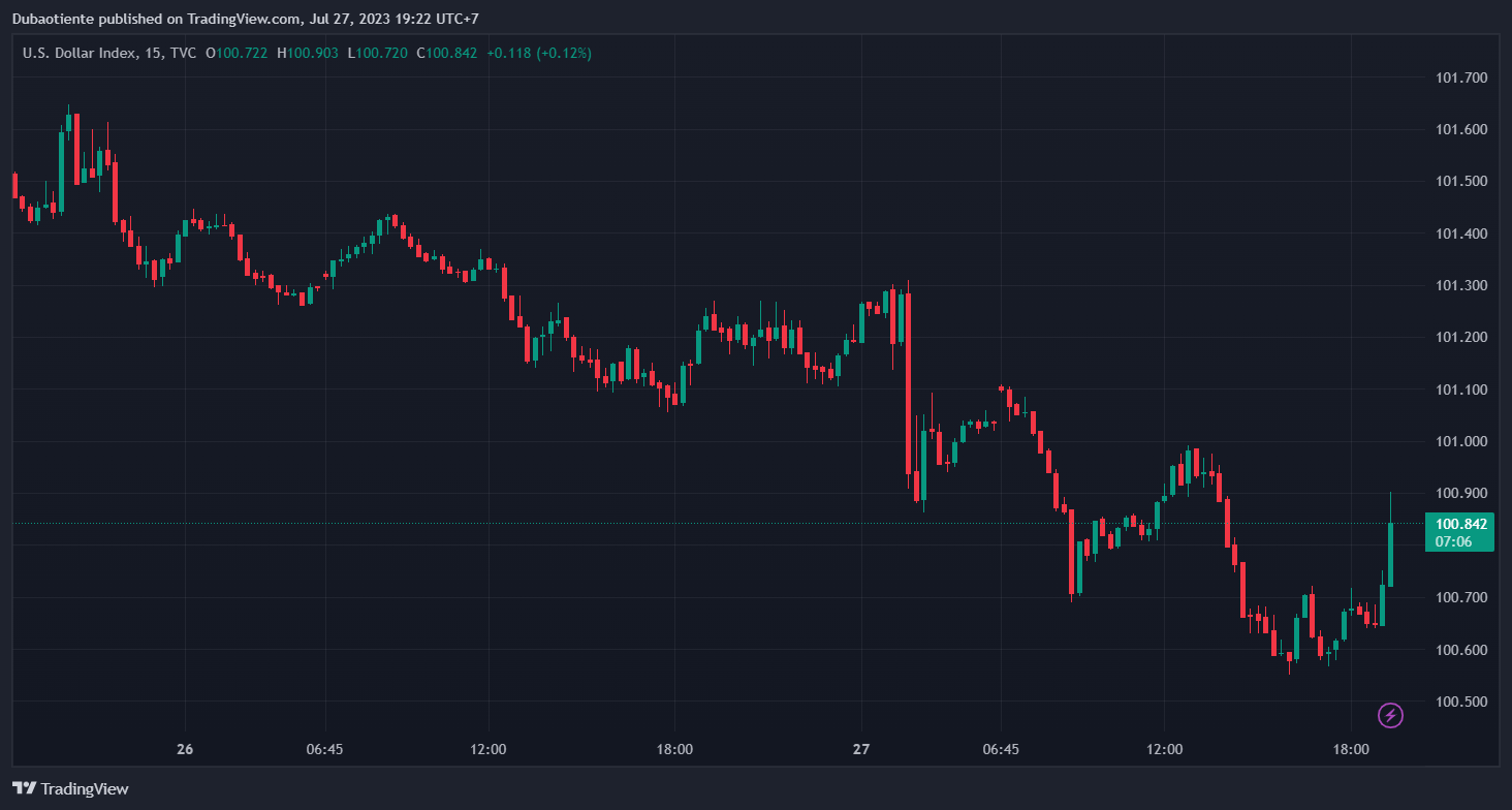 Tuy Fed đã tăng lãi suất thêm 25bps đúng như dự kiến, tuy nhiên đây rất có thể là đợt tăng lãi suất cuối cùng trong FY2023, điều này đã vô hình chung khiến cho đồng USD sụt giảm. Chỉ số DXY hiện chỉ còn 100.814