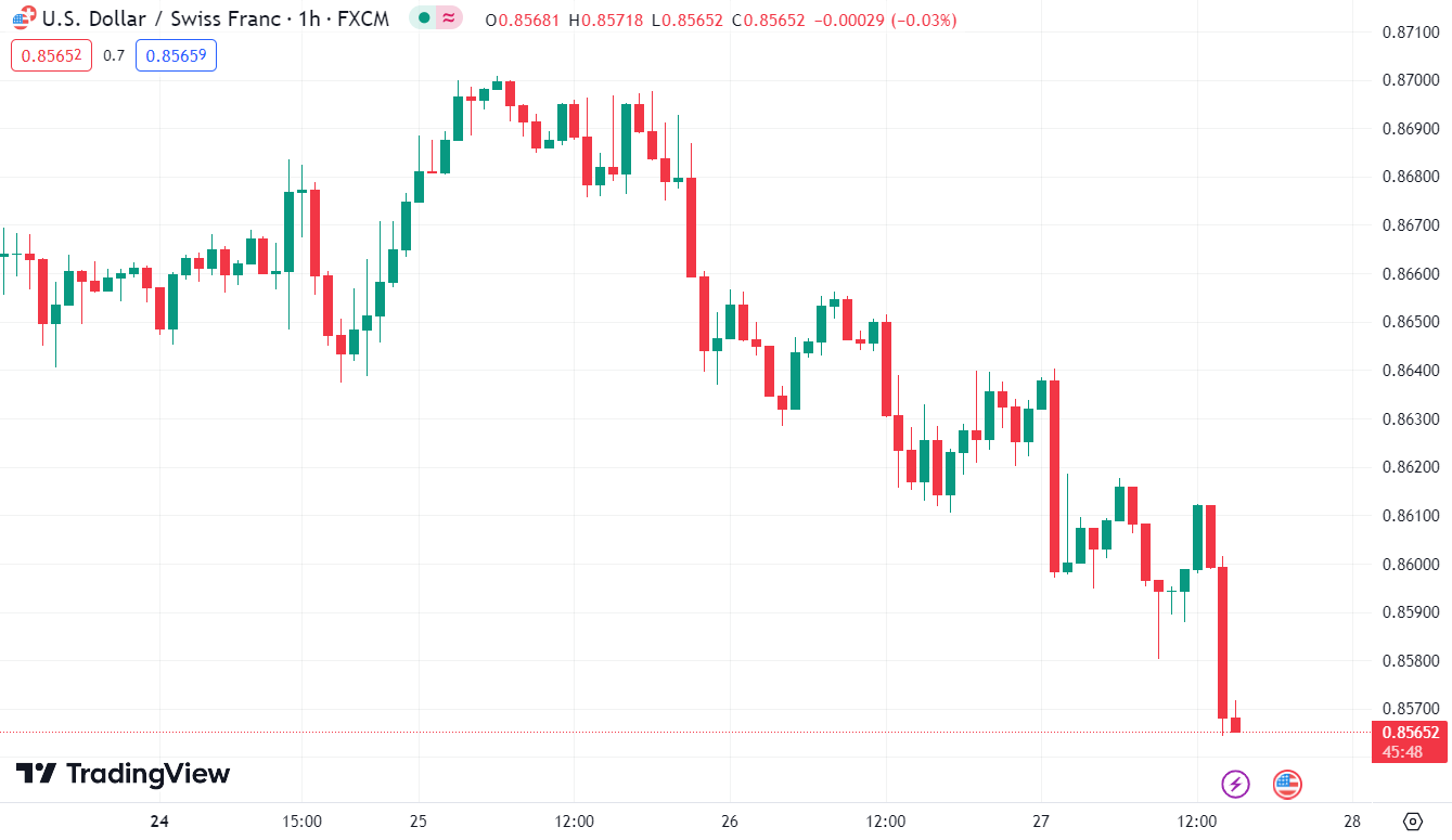 USDCHF tiếp tục giảm xuống mức 0.85652.