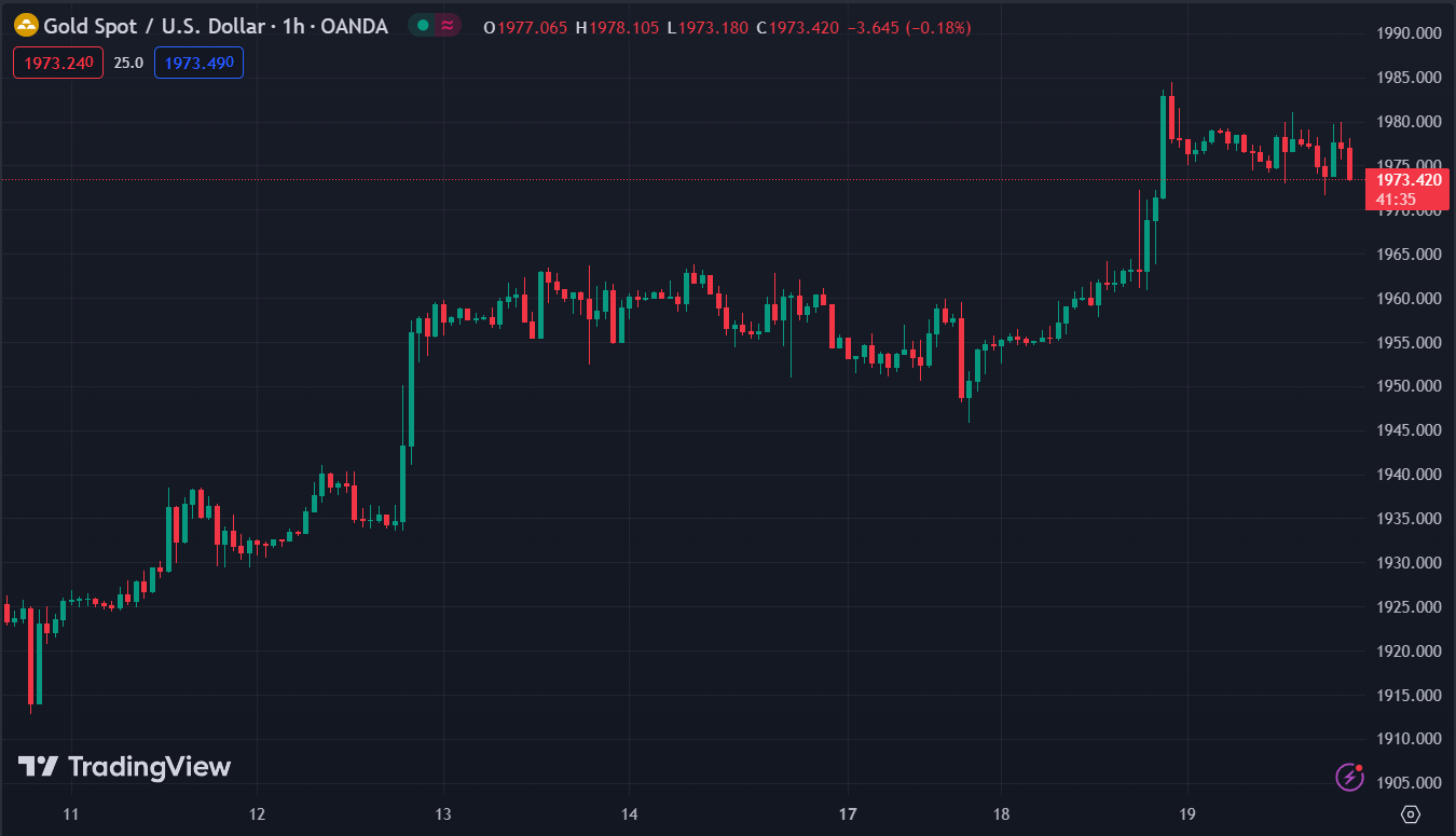 Vàng biến động trái chiều trong phiên Mỹ khi tiến sát $1,980 vào đầu phiên trước khi giảm xuống dưới $1,974 rồi tăng trở lại, kết phiên ở mức $1978. Dầu thô WTI tăng sát đường trung bình động 200 ngày trước khi công bố dữ liệu dữ trữ dầu thô hàng tuần của EIA Mỹ nhưng quay đầu giảm mạnh sau tin, kết phiên ở $75.26/ thùng. Lợi suất trái phiếu kho bạc kỳ hạn 10 năm giảm 4.7 điểm cơ bản xuống 3.74%.